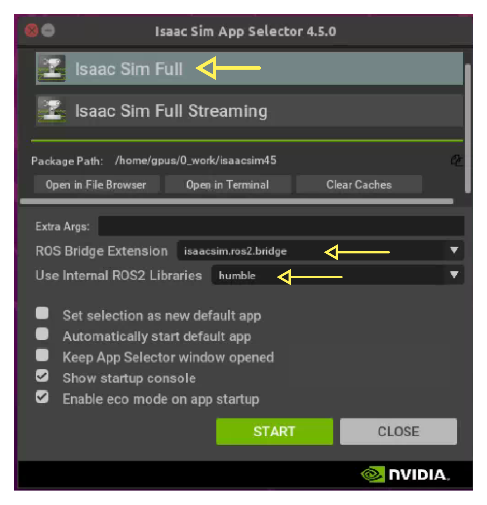cd ~/isaacsim && ./isaac-sim.selector.sh