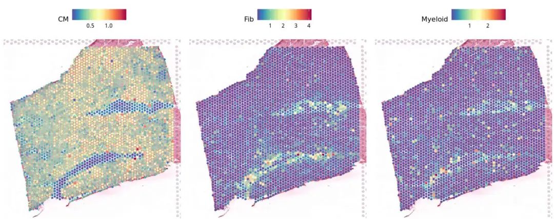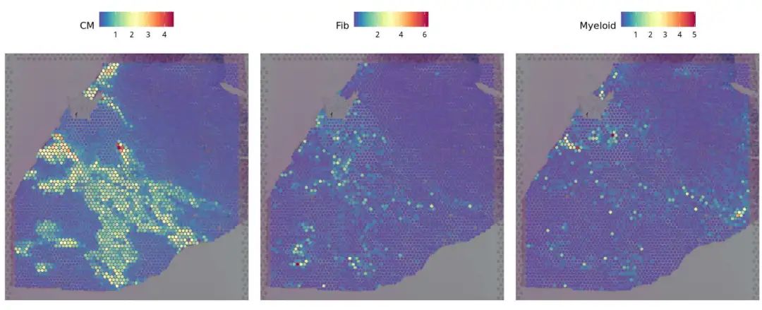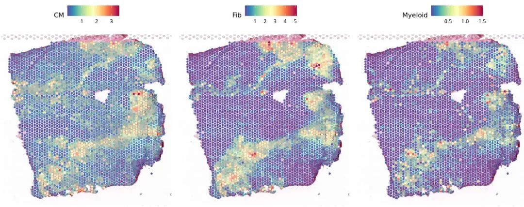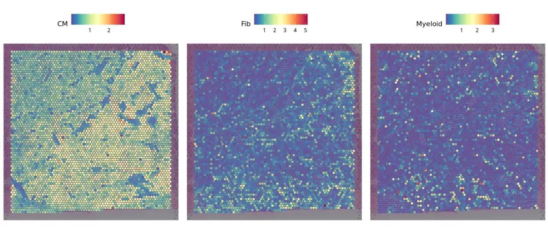 SpatialFeaturePlot(FZ_P14, features = c("CM","Fib","Myeloid"),pt.size.factor = 800)