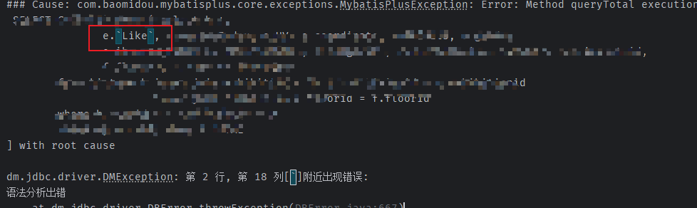 java调用数据库,报错,语法不对 列[`]附近出现错误: | 达梦技术社区