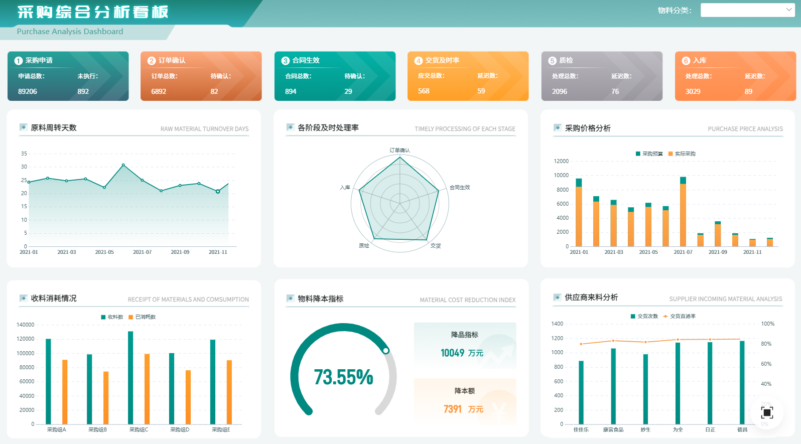 核心思路:采购图表是“风险监控型”,要帮他们看到哪里涨了、哪里不稳、哪里该补货了。