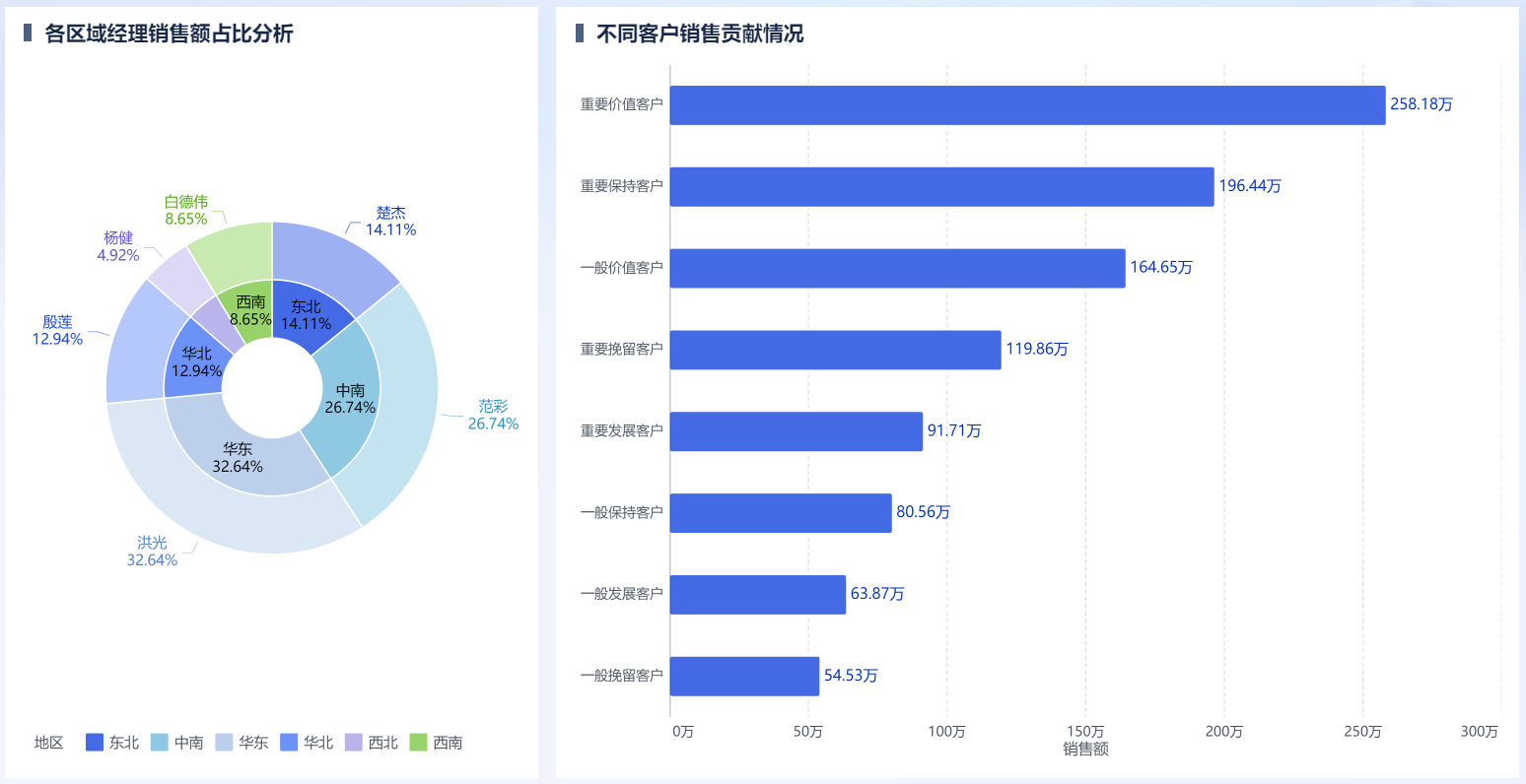 核心思路:销售图表是“目标驱动型”,要围绕进度、落地、差距、客户结构去做。