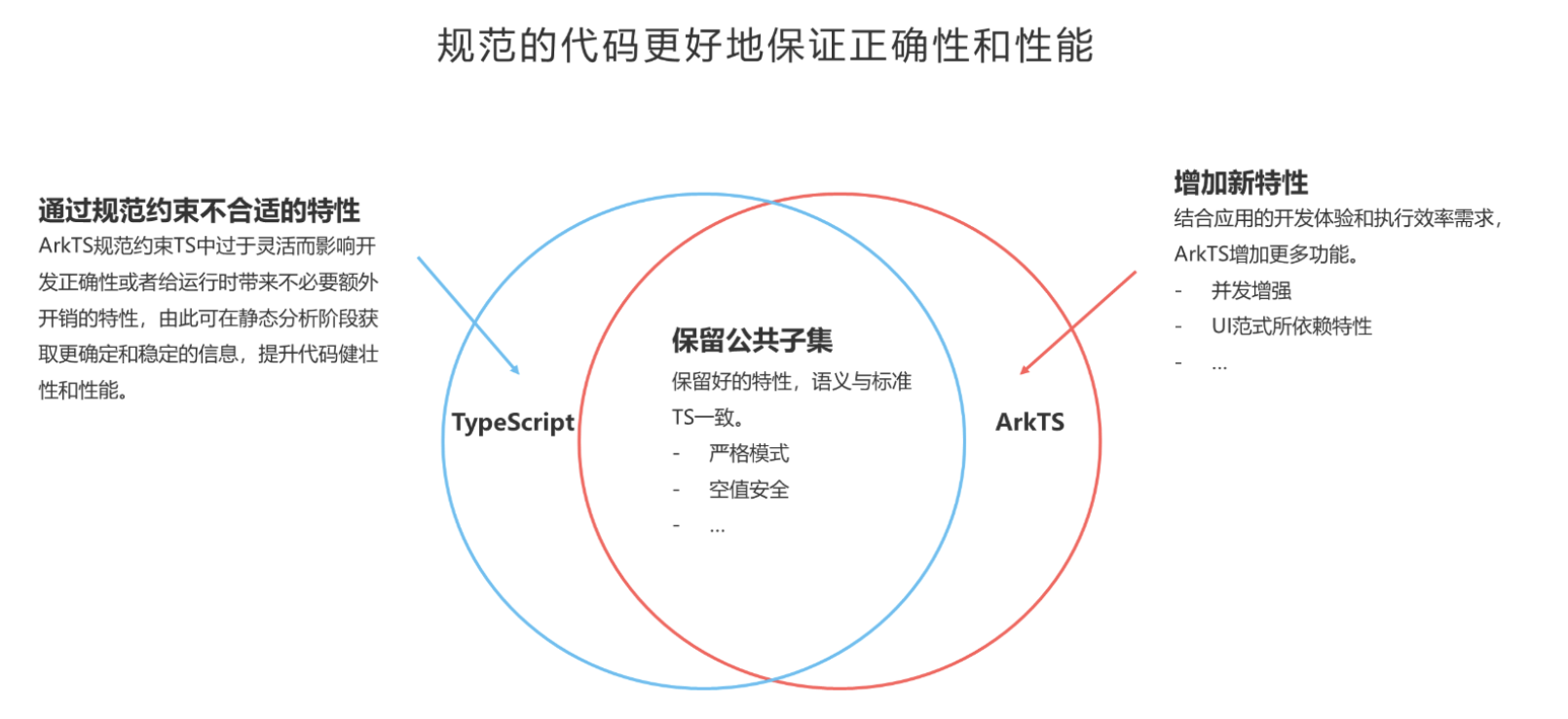 为更好地支持 HarmonyOS 应用的开发和运行,从 Harmony OS NEXT Developer Preview 0 版本开始,ArkTS 在 TS 的基础上,进一步通过规范强化静态检查和分析,这样做有两个好处:1.许多错误在编译时可以被检测出来,不用等到运行时,这大大降低了代码运行错误的风险,有利于程序的健壮性;2.减少运行时的类型检查,从而降低了运行时负载,有助于提升执行性能。