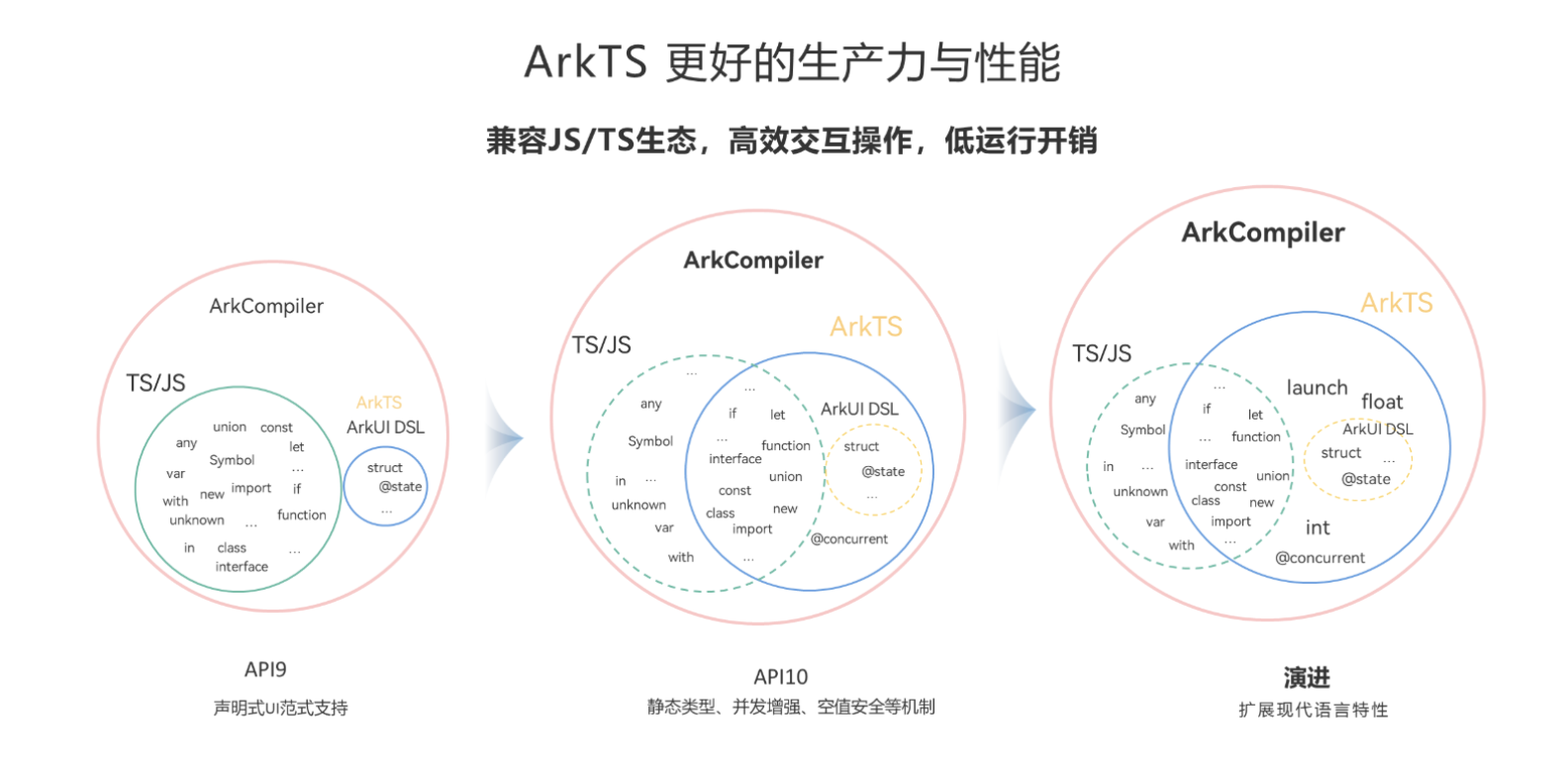ArkTS 支持与标准 JS/TS 的高效互操作,兼容 JS/TS 生态。HarmonyOS 也提供了标准 JS/TS 的执行环境支持,在“更注重已有生态直接复用”的场景下,你可以选择使用标准 JS/TS 进行代码复用或开发,更方便兼容现有生态。