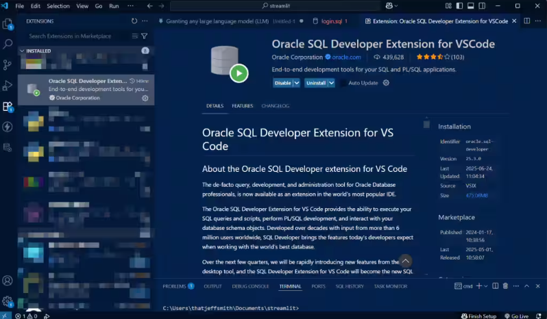 Figure 7: Simply search for 'SQL Developer' in the VS Code Marketplace