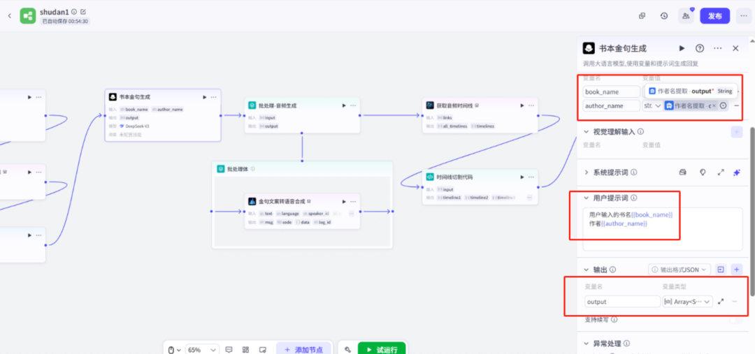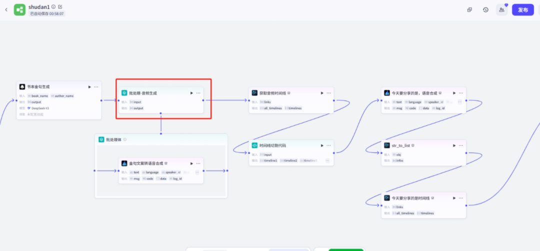 将生成的金句用语音合成插件在批处理体中合成在一起,最后生成音频链接