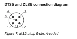 正确接线是传感器稳定工作的前提,DT35采用M12 5-pin标准连接器,各针脚功能如下: