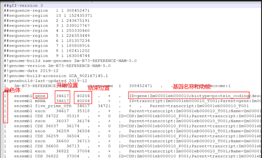 一般,有基因组数据的物种,有基因组的版本,还有配套的gff或者gff3格式的文件,文件的内容里面有: