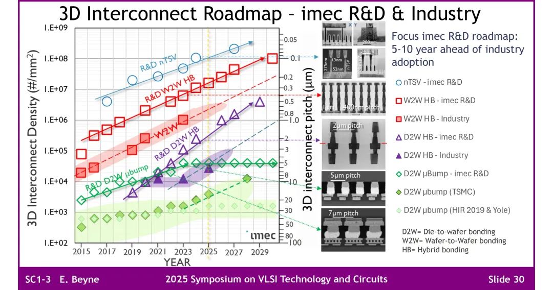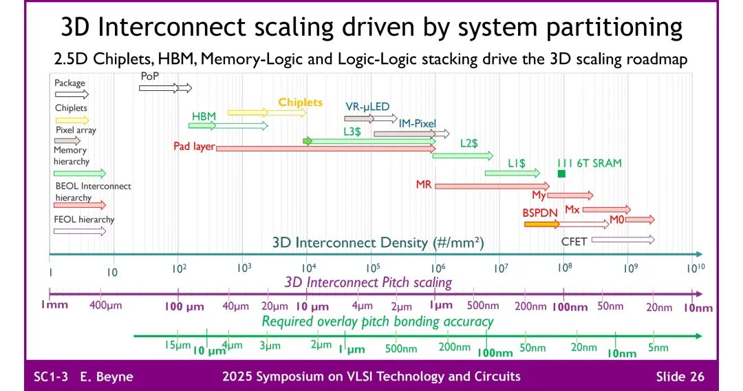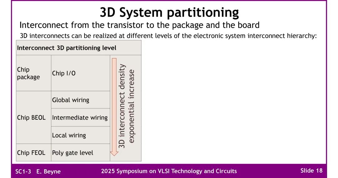 在半导体行业面临摩尔定律放缓与“内存墙”“功耗墙”双重挑战的背景下,2.5D与3D集成技术已成为突破性能瓶颈的核心驱动力。2025 Symposium on VLSI Technology and Circuits会议上,来自imec的Eric Beyne博士系统阐述了2.5D/3D集成技术的现状、核心突破与未来路线图,揭示了其在AI、高性能计算、移动设备等领域的关键作用。本文将全面解析这一技术体系,从历史演进到技术细节,从应用场景到未来趋势,展现三维集成如何重塑半导体产业格局。