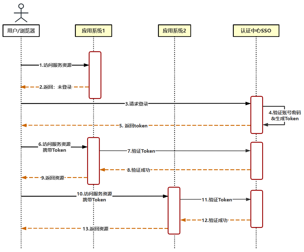 在这个架构中,SSO 认证中心是核心枢纽。它负责统一管理用户的身份认证,存储用户信息。各个应用系统与认证中心进行交互,由认证中心判断用户是否已登录,以及验证用户身份的合法性。