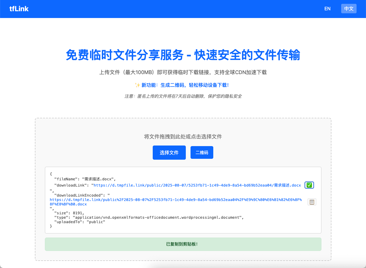 1️⃣ 打开网站直接拖拽文件 2️⃣ 秒生成下载链接 3️⃣ 复制链接发给对方就OK了