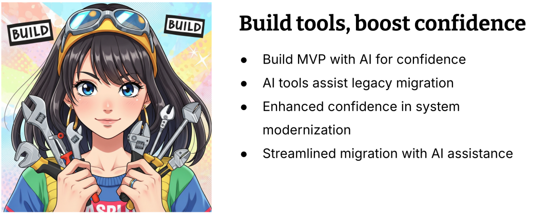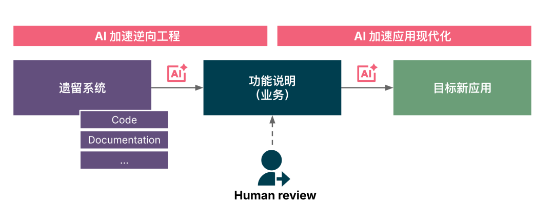 基于过往丰富的遗留系统迁移经典,我们会加 AI 加速放在两个主要的领域: