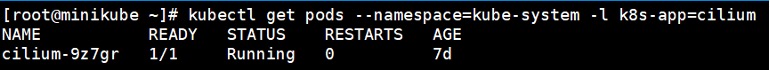 Waiting for Cilium to be installed...[root@minikube ~]# kubectl get pods --namespace=kube-system -l k8s-app=cilium