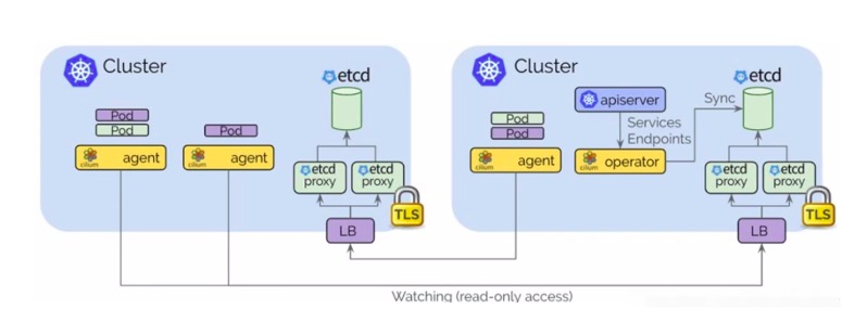 在Cilium的架构中,除了Key-Value数据存储之外,主要组件包括Cilium Agent和Cilium Operator,还有一个客户端的命令行工具Cilium CLI。