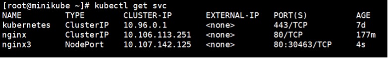 [root@minikube ~]# kubectl expose deployment nginx3 --type=NodePort --port=80