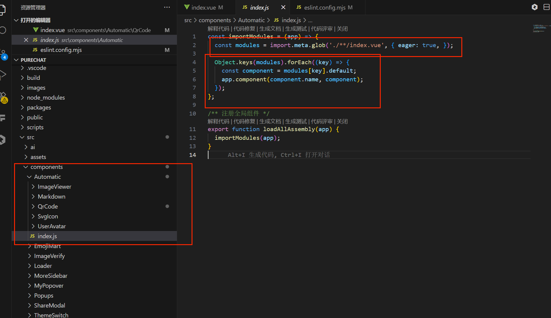 循环遍历的方式,获取遍历的组件名称和内容,并用app.component()进行全局注册