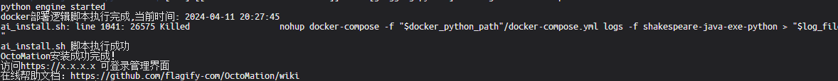 ./octomation_community_docker_install_offline_<VERSION>.sh这里安装时间比较长,可以使用screen,安装完毕如下