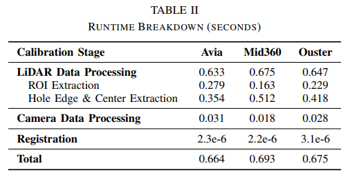如表 II 所示,我们的方法在所有传感器配置上的总处理时间均低于 0.7 秒。我们方法的高效率源于以下几个因素: