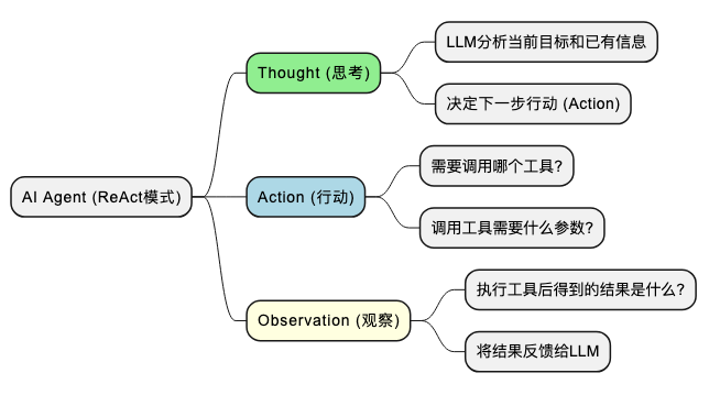 Agent的核心循环(ReAct模式:Reason + Act)如下: