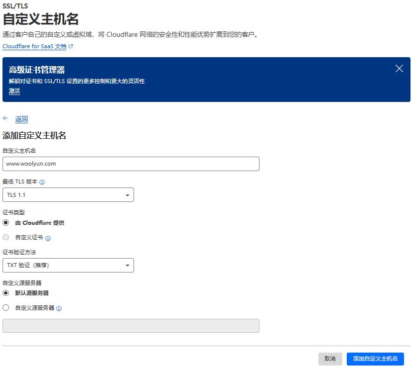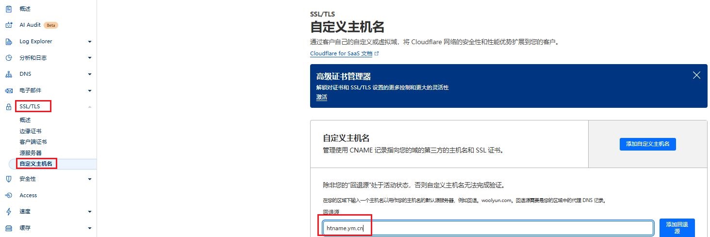 进入 SSL/TLS → 自定义主机名,填写回退源地址