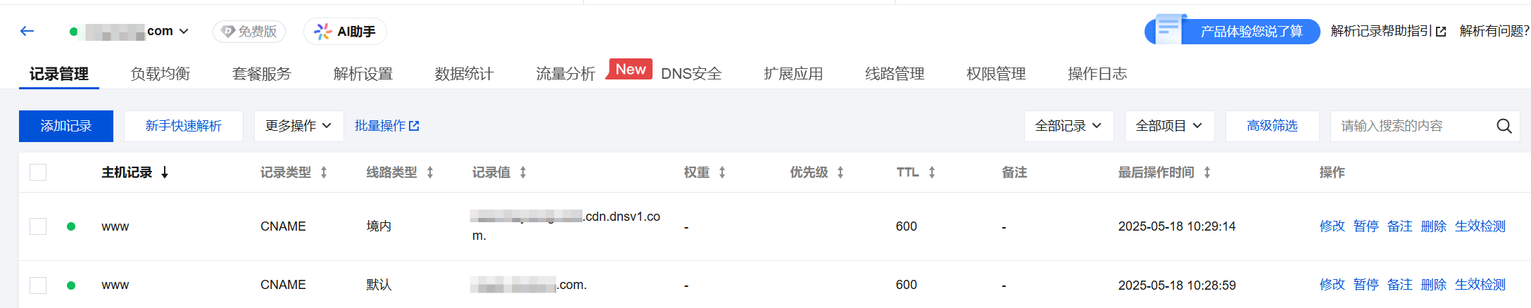 ✔ 主域名需国内外分流(国内走国内CDN,境外走Cloudflare)