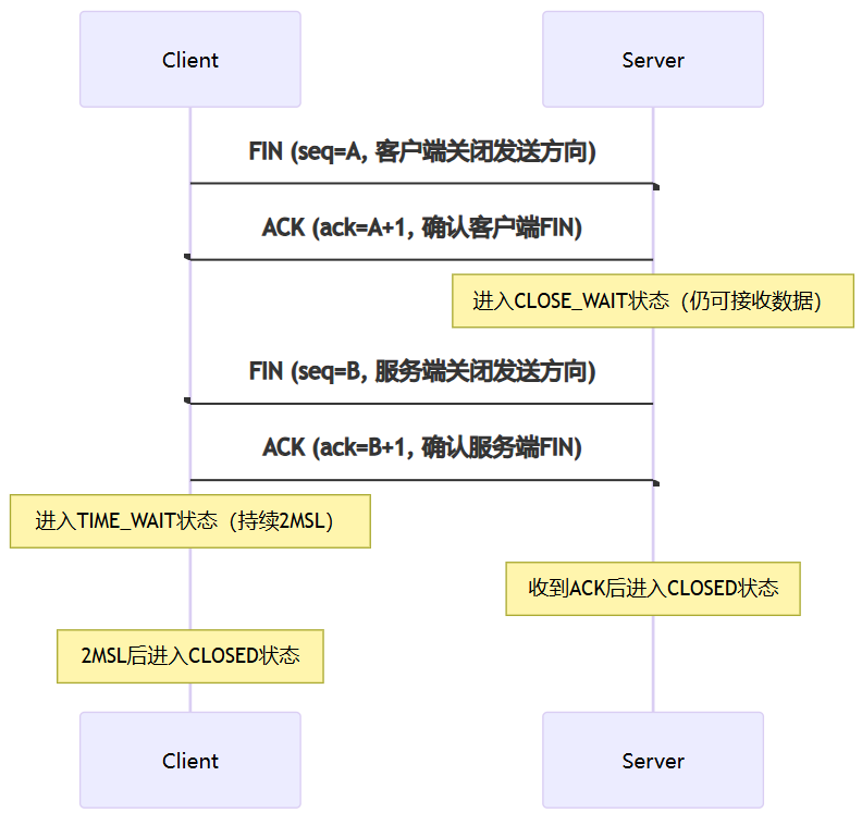 回答:四次挥手是TCP断开连接的过程,因TCP全双工特性,需双方分别关闭发送方向。
