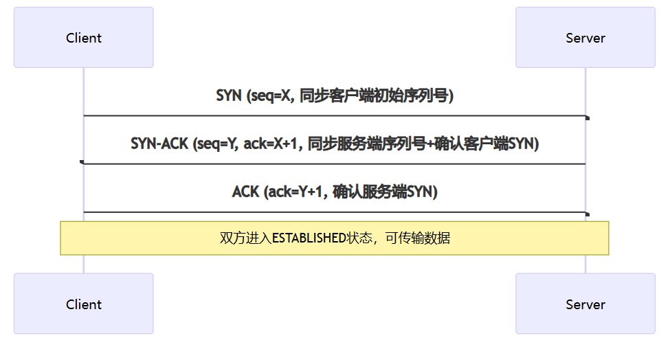 回答:三次握手是TCP建立连接的过程,目的是同步双方的序列号(seq)并确认初始窗口大小。