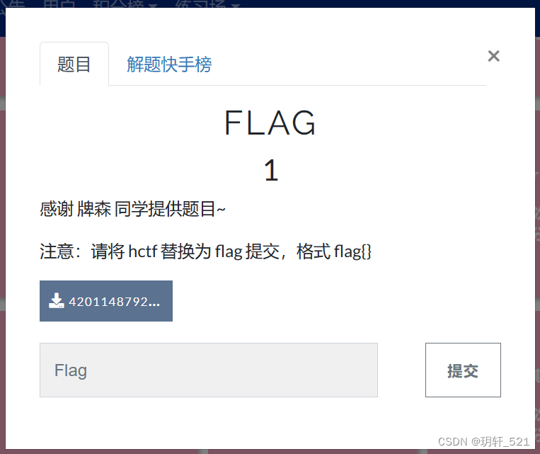 注意:请将 hctf 替换为 flag 提交,格式 flag{}