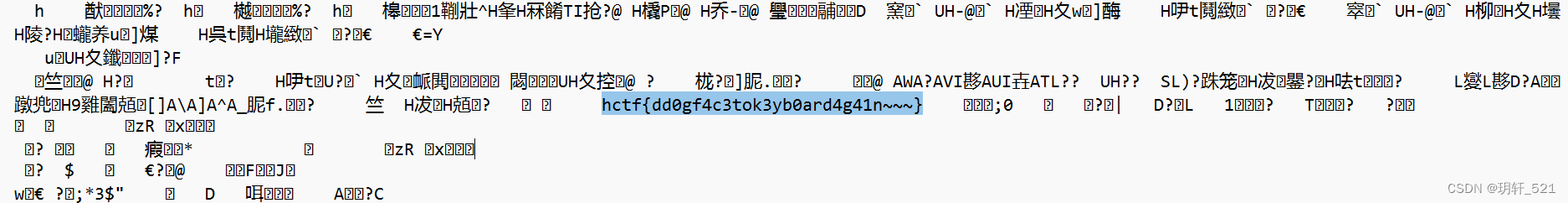 2、由pk文件头可以看出隐写内容为zip文件,按save Bin键保存为zip文件。解压获得一个名为1的文件,可以通过添加.txt后缀或在010 Editor中查看文件。仔细找,找到flag。