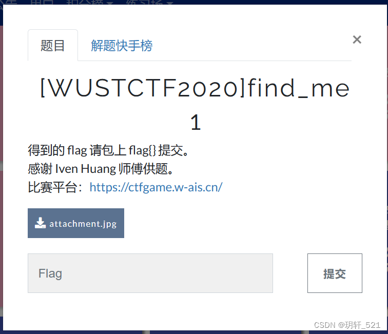 得到的 flag 请包上 flag{} 提交 感谢 Iven Huang 师傅供题。 比赛平台:https://ctfgame.w-ais.cn/