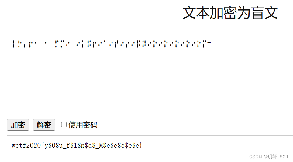 2、在备注发现一串字符,似乎是盲文,使用在线网站进行解密,得到flag。 盲文加解密在线网站