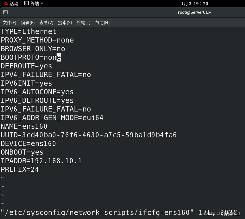 vim /etc/sysconfig/network-scripts/ifcfg-ens160