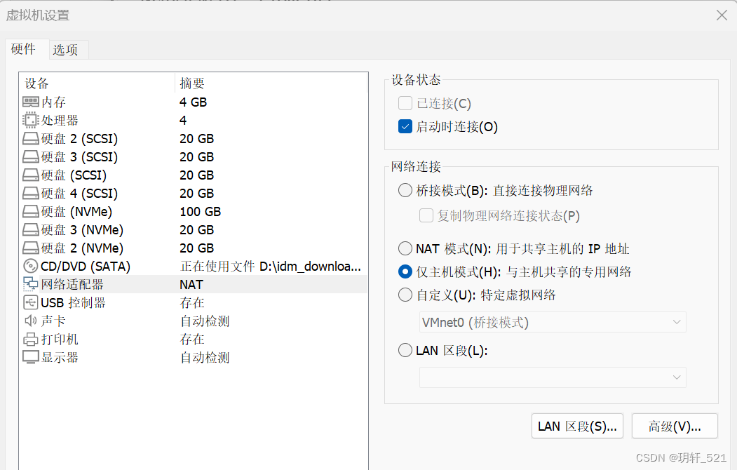 配置server01虚拟机(samba服务器)IP “编辑虚拟机设置”–》”网络适配器“,设置为:仅主机模式–》确定