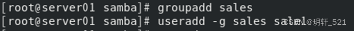 [root@server01 samba]# groupadd sales