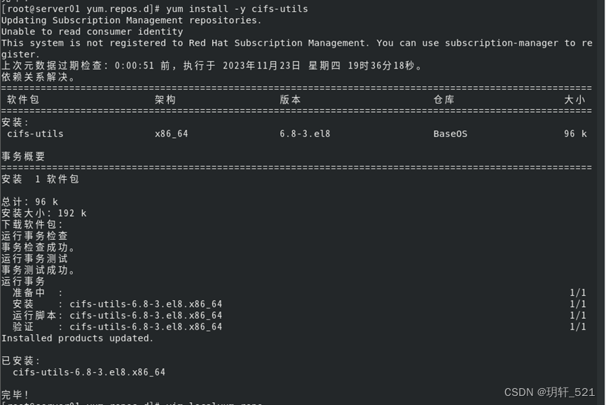 [root@server01 yum.repos.d]# yum install -y cifs-utils