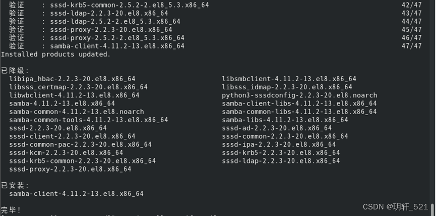 用yum命令安装samba服务。
