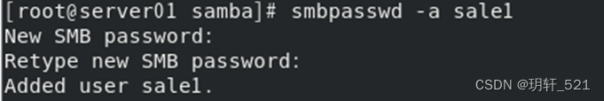[root@server01 samba]# smbpasswd -a sale1