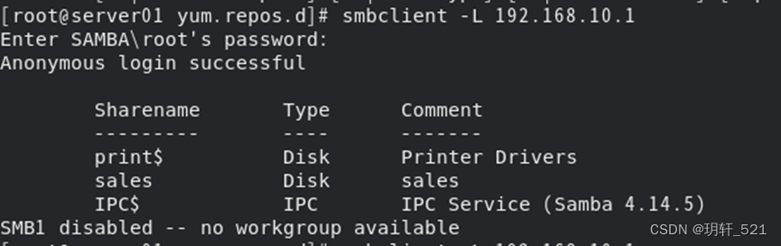 [root@server01 yum.repos.d]# smbclient -L 192.168.10.1