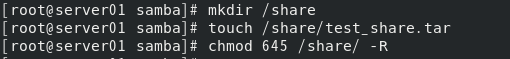 任务记录 | 在Server01上建立share目录,并在其下建立测试文件,设置共享文件夹本地系统权限。 [root@server01 samba]# mkdir /share [root@server01 samba]# touch /share/test_share.tar [root@server01 samba]# chmod 645 /share/ -R 修改samba主配置文件smb.conf。 [root@server01 samba]# vim /etc/samba/smb.conf 关掉防火墙 [root@server01 samba]# systemctl stop firewalld.service 更改共享目录的context值。 [root@server01 samba]# chcon -t samba_share_t /share/ 重新加载配置。 可以使用restart重新启动服务或者使用reload重新加载配置 Windows客户端client2 在资源管理器输入:\\192.168.10.1,可以不用输入用户名和密码,就能访问samba服务器。 可以下载文件,但无法上传文件 | |||||||||||||||||||||