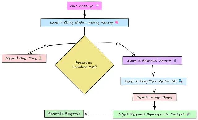 这种方法结合了多种内存策略的优势,创建了一个更复杂、更接近人类认知模式的内存系统。