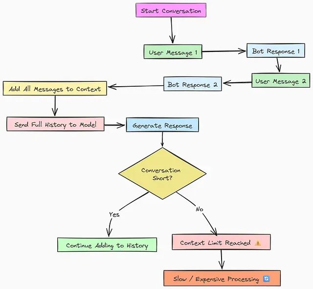 随着AI代理与用户的对话深度和长度不断增加,其内存消耗呈指数级增长。这种增长主要源于系统需要维护的多个组件,包括历史上下文存储、工具调用记录、数据库查询结果以及其他依赖项的状态信息。