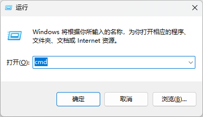 1、键盘按住“Win 键 + R”以开启运行,输入:cmd