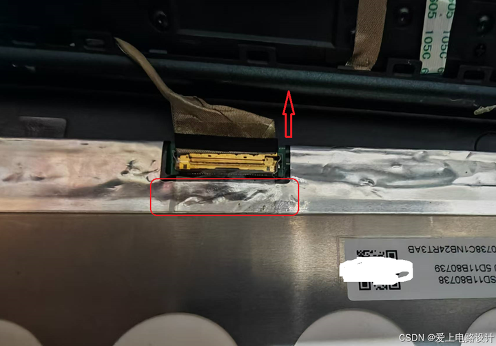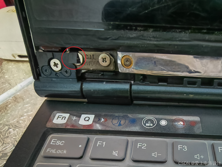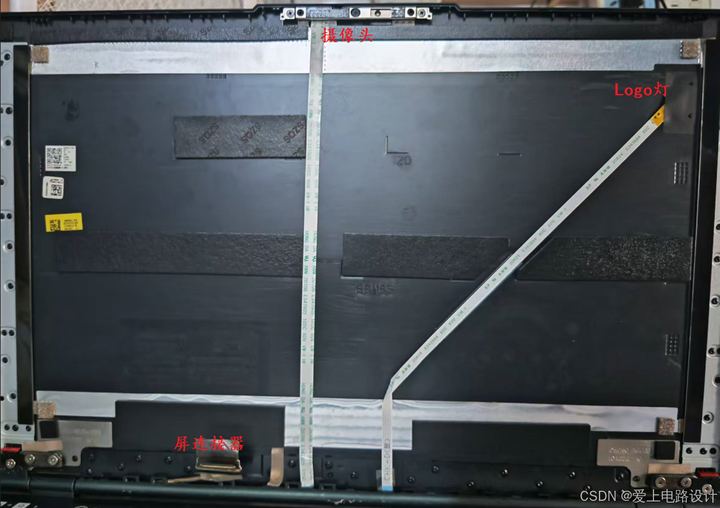 显示屏平放于键盘上面,撕下胶带水平往后拉(无卡扣),即可断开屏线连接器: