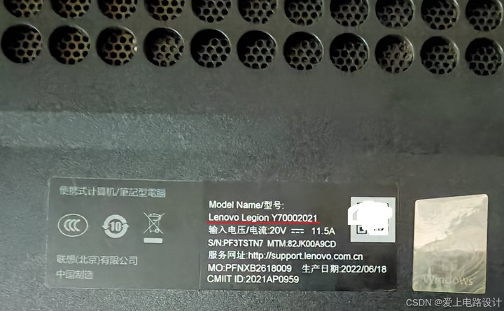 后盖上的型号:Y70002021,由于只拆了后盖(下称 D壳),没有拆卸散热器,未获取到具体的板号。通过联想官方物料编码规则及代工厂标识符分析,该设备由纬创(Wistron)代工。