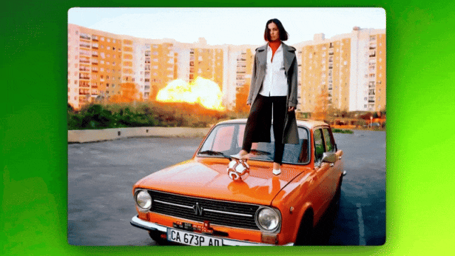 在此基础上,Higgsfield 又推出了 Product-to-Video 功能,只需上传一张人物照片,然后拖拽产品图片、添加文字,就能生成广告大片。