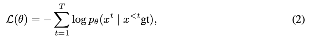 其中表示所有先前生成的元素。在实践中,AR模型通常采用教师强制策略进行训练,该策略在训练期间用真实历史数据替换模型自身的过去预测。这将训练目标简化为标准的负对数似然(NLL)最小化: