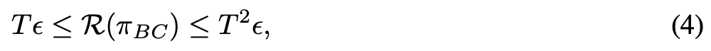 此处表示在整个执行周期内运行策略的期望累积损失(或成本)。设表示行为克隆策略在步执行中的平均期望误差,其本身存在上界。行为克隆的遗憾度被限定为: