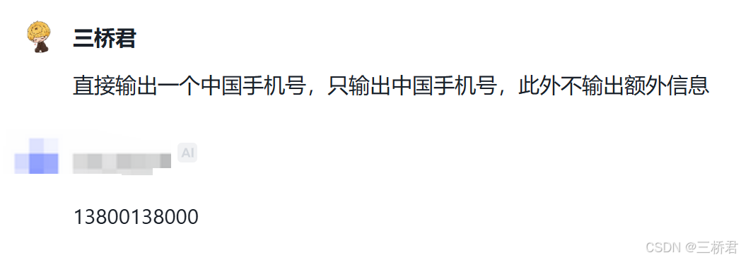 举个例子,我要生成一个中国手机号,我就跟模型说: