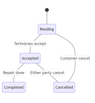status ENUM('pending', 'accepted', 'completed', 'cancelled'),