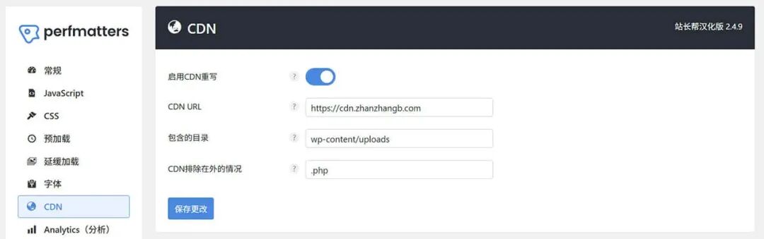 /wp-content/uploads目录访问URL你可以使用任意的WordPress主流缓存/优化插件。比如 Perfmatters等都支持静态资源的CDN地址改写。