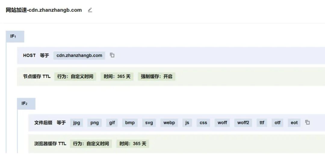 });这样无论是文章里的图片、特色图、缩略图、还是直接引用的资源,都会改写成CDN域名(注意将代码中的cdn.zhanzhangb.com替换成自己的CDN加速域名)。